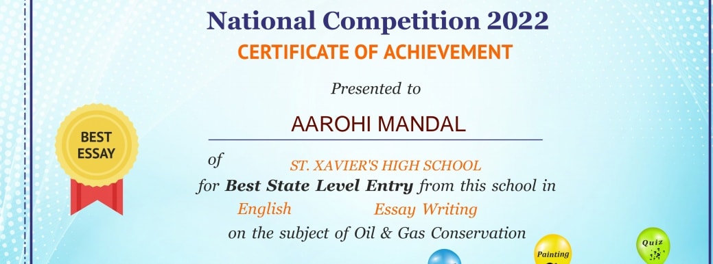 Aarohi Mandal’s Essay was selected among first 50 best entries in essay writing competition.